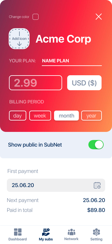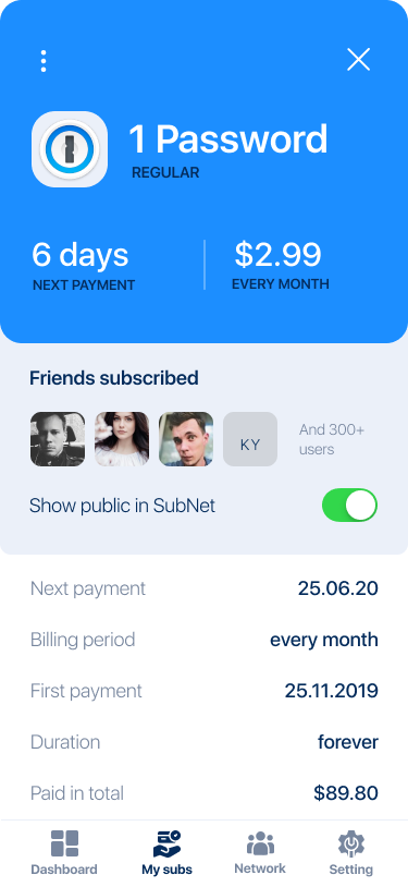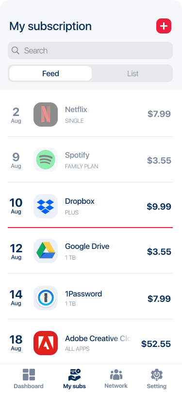 Соберите все ваши подписки и платежи в одном приложении, чтобы вы могли легко отслеживать расходы, даты выставления счетов и другие детали. Больше никаких неожиданных сборов или продлений!